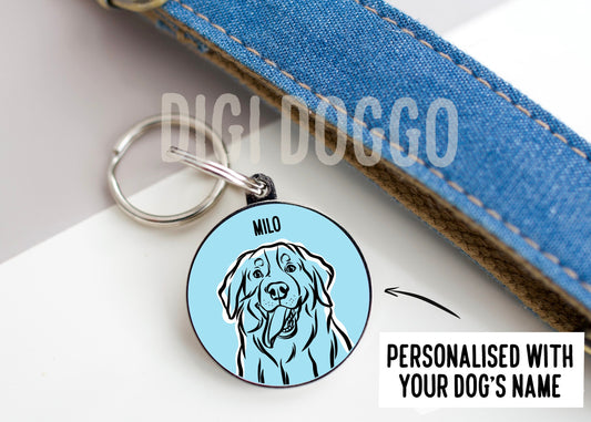 Bernese Mountain Dog ID Tag/ Personalised Berner Name Collar Tag/ Dog Line Drawing Metal Tag/ Bouvier Bernois Lover Gift/ Bernese Cattle Dog