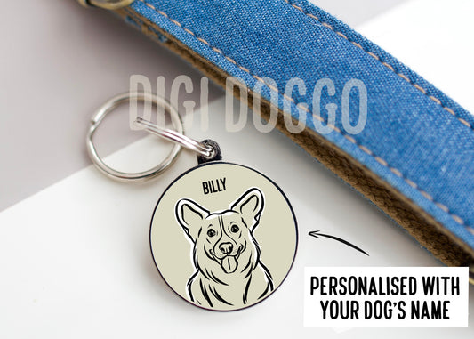 Corgi Face Outline Dog Tag/ Custom Corgi ID Metal Tag/ Line Art Dog Tag/ Dog Breed Illustration Tag/ Corgi Microchip Collar Tag/ Corgi Owner