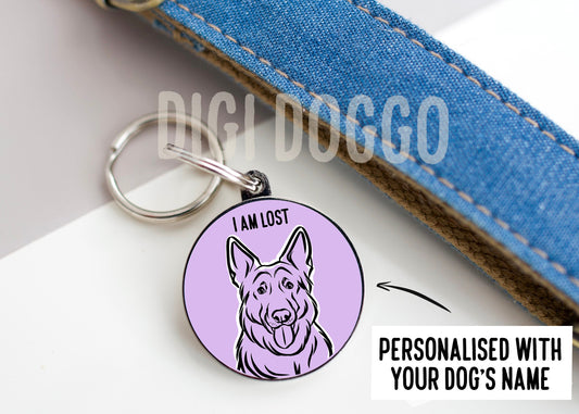 German Shepherd Outline ID Tag/ Personalised German Shepherd Face Circle Tag/ Customised Dog Breed Metal Tag/ Dog Lovers Keepsake Gift