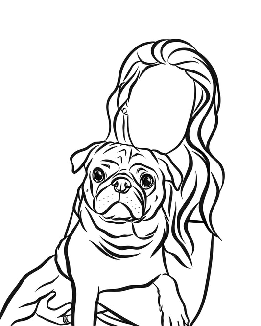 Pet and Human Outline Portrait/ Custom Dog Owner Line Art/ Outline Drawing from Photo/ Cute Dog Memorial Printable Art/ Minimalist Wall Art