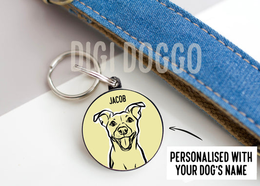 Pitbull Outline ID Tag/ Personalised Circle ID Dog Tag/ Pitbull Owner Gift/ Customised Dog Breed Line Drawing Collar Tag/ Bespoke Dog Tag