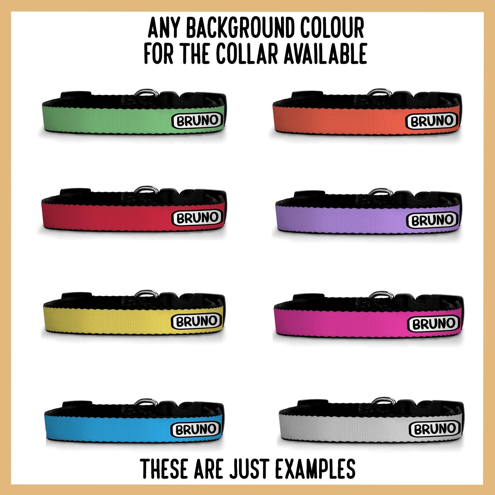 One-of-a-kind collar personalised with your dog's name and colour!