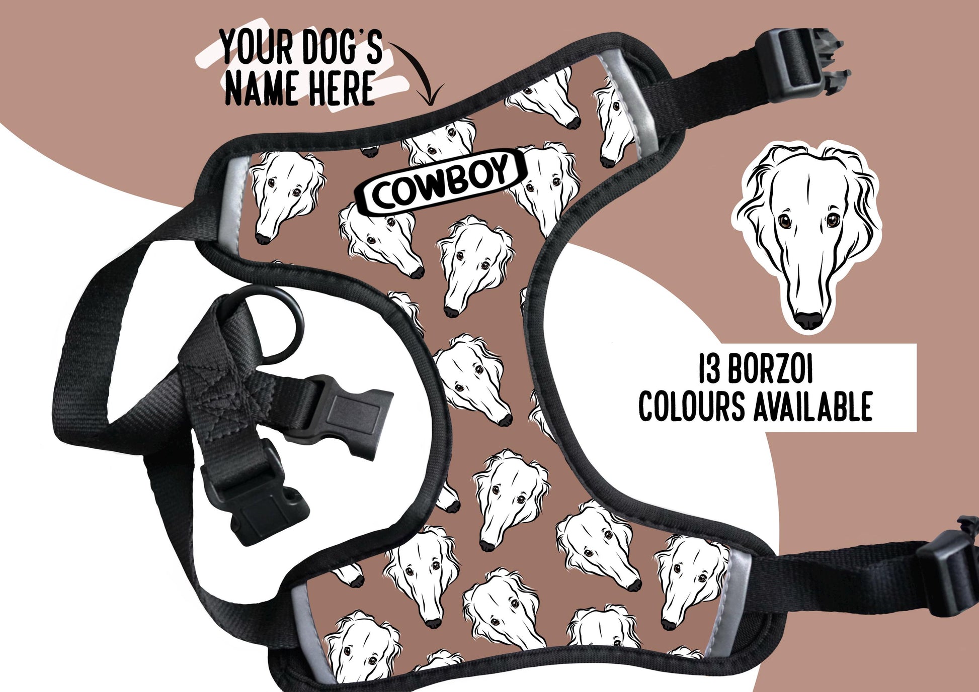 Design fully personalised harness for your Borzoi!-Simply choose your dog’s breed colour from available options